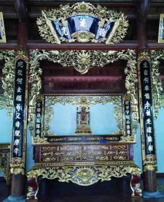 Bàn thờ là nơi để thờ cúng thổ công, tổ tiên ông bà cha mẹ, những người đã mất. Trên bàn thờ được bài trí các bộ đồ thờ cúng như ngai thờ, khám thờ, bát hương, đỉnh đồng, cây nến, lọ hoa…Và đặc biệt ở bàn thờ từ đường dòng họ hoặc nhà con trưởng thì có treo thêm bộ hoành phi câu đối hoặc cuốn thư câu đối
