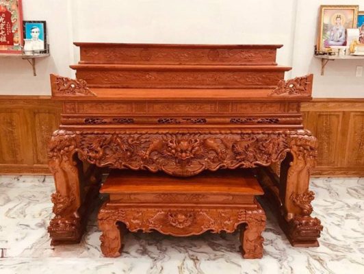 Sập thờ 2m07 tứ linh gỗ gụ ST14