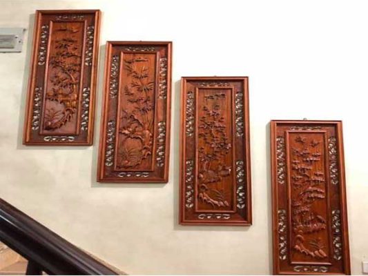 Tranh Tứ Quý Tùng Trúc Cúc Mai Treo Trường Gỗ Hương